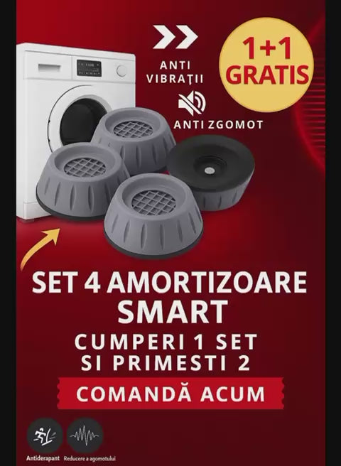 🔇 Scapă de zgomot și vibrații! Aceste amortizoare smart anti-vibrație si anti-alunecare sunt soluția simplă și eficientă pentru a-ți păstra casa liniștită și podeaua protejată atunci când mașina de spălat sau uscătorul sunt în funcțiune.